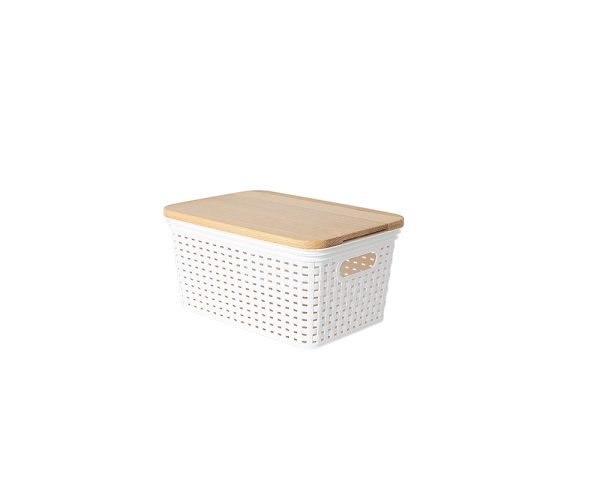Der micro Korb im „Rattan Design“ mit Holzdeckel ist eine praktische Lösung für die Aufbewahrung. Dieser Korb verleiht dem Raum eine natürliche und warme Atmosphäre, während der Holzdeckel den Inhalt vor äußeren Einflüssen schützt und zugleich einen einfachen Zugang ermöglicht.